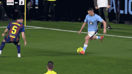 第43分鐘,塞爾塔卷土重來,巴薩的防線再次出現(xiàn)漏洞,禁區(qū)弧頂無人盯防,伊格萊西亞斯破門得分。