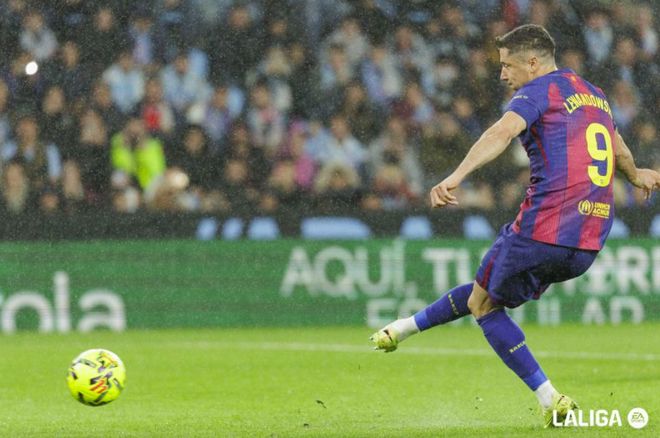 第10分鐘,萊萬多夫斯基操刀主罰,雖然門將判斷正確也碰到了球,怎奈球速太快,巴薩取得領(lǐng)先。